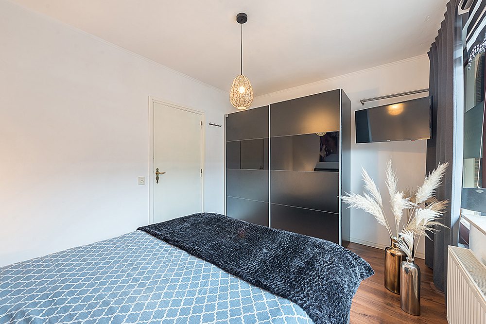 Vanuit de hal is de oudersslaapkamer bereikbaar ca. 3.90 x 2.95 met laminaatvloer en balkon.