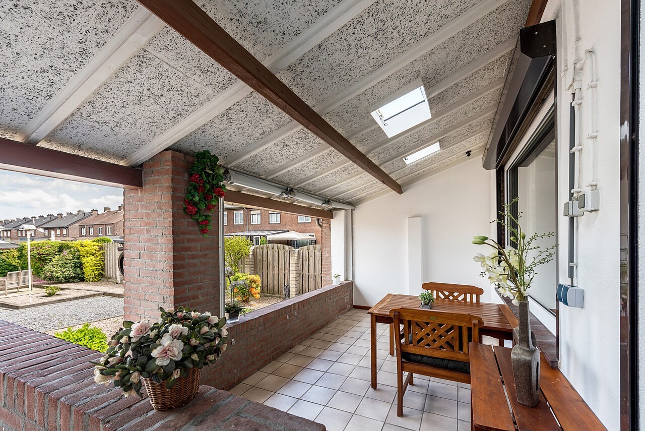 Overdekt zonneterras 5.00 x 2.50 eenvoudig te creëren tot tuinkamer.