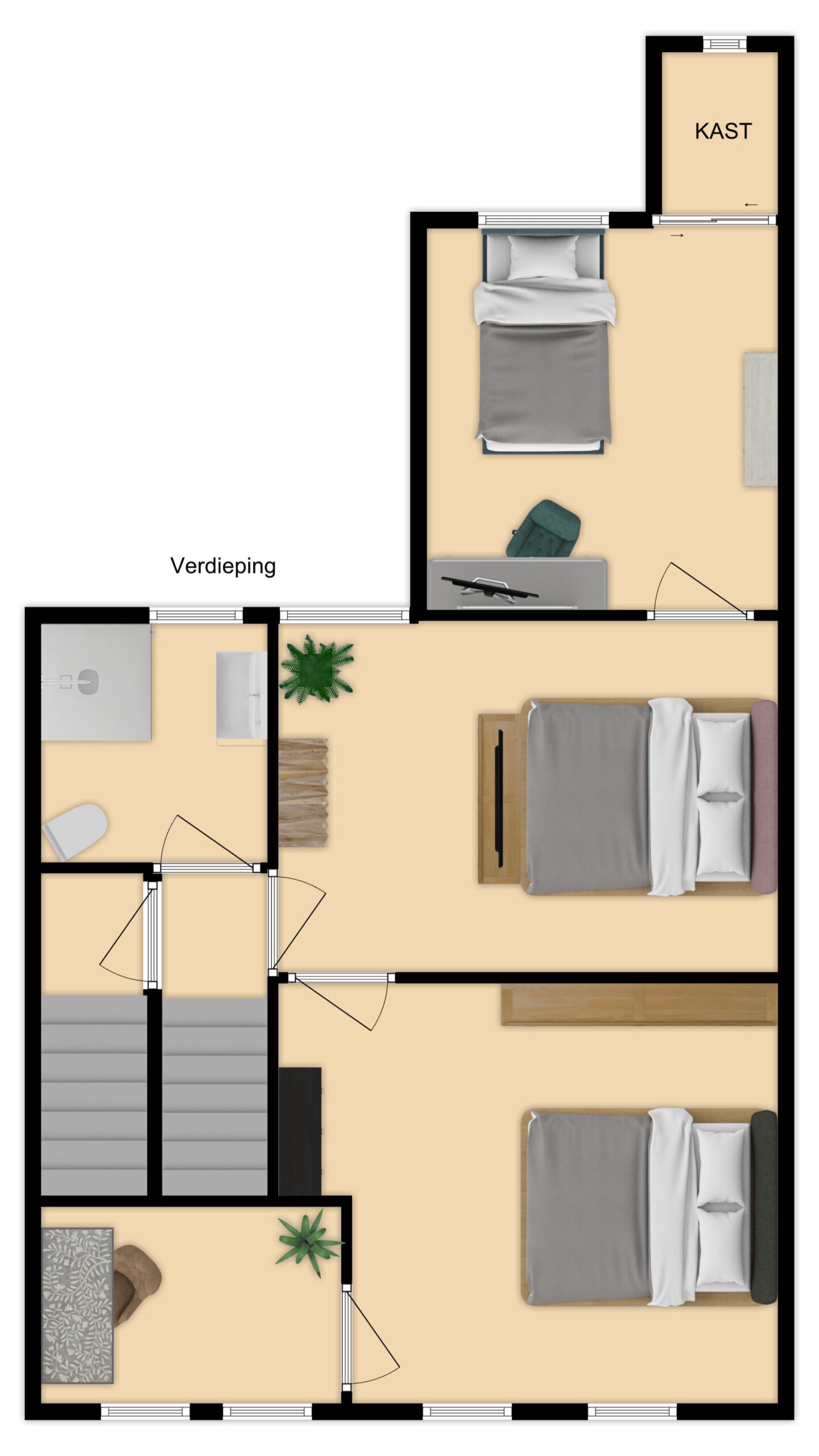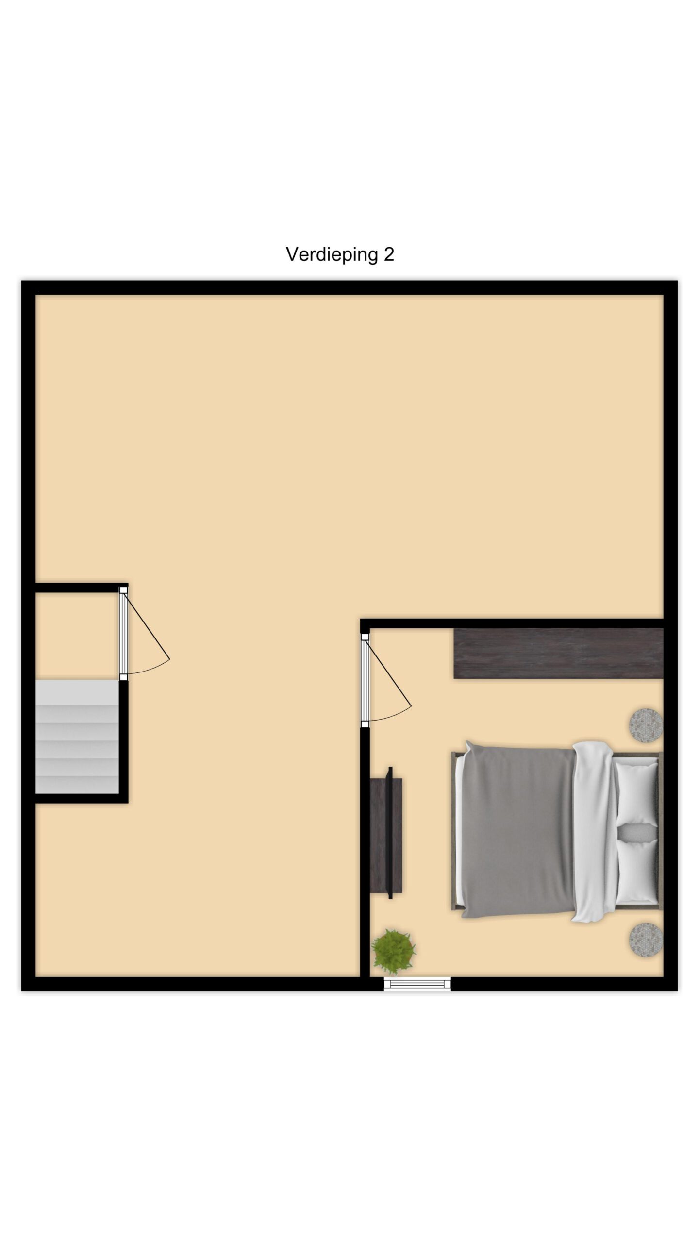 Grote bergzolder met vierde slaapkamer ca. 3.00 x 2.80.