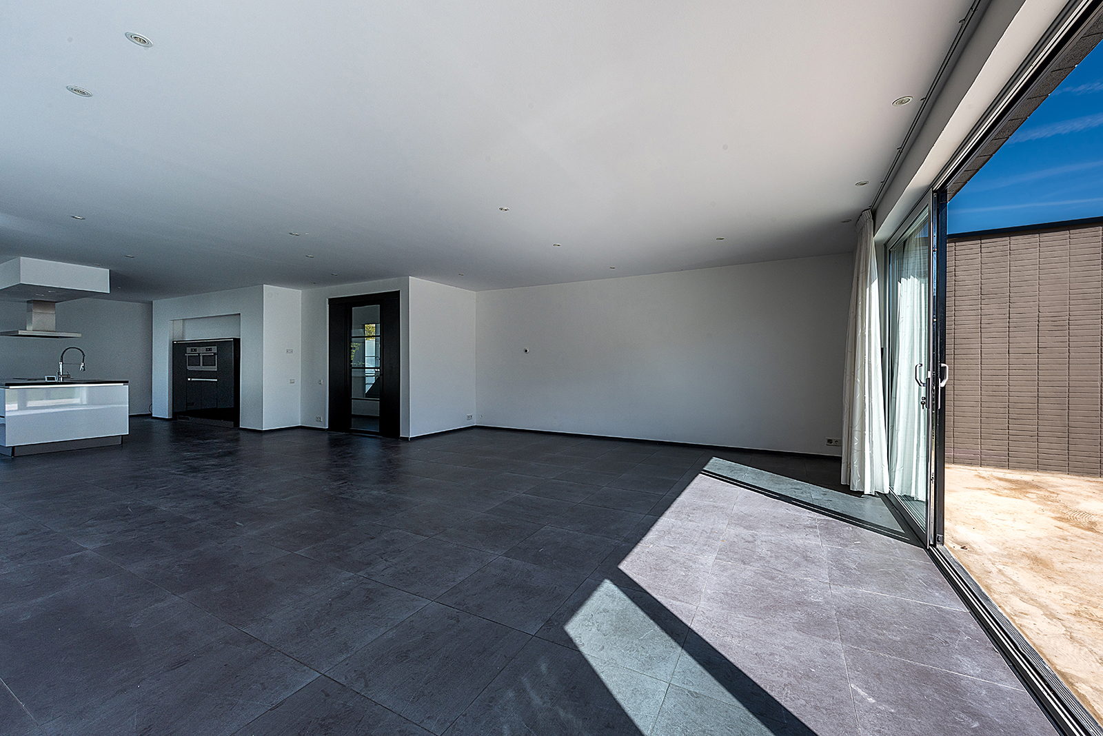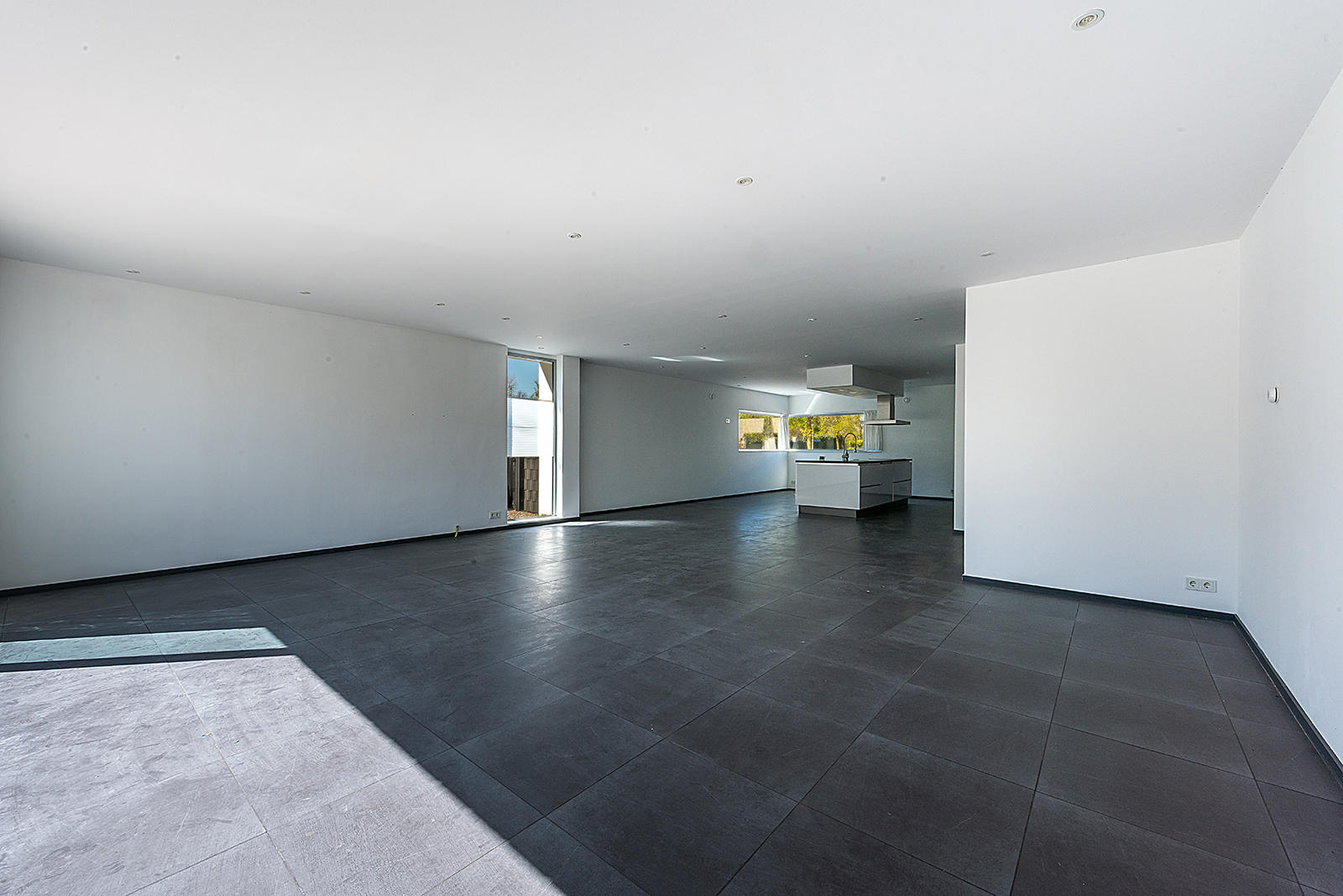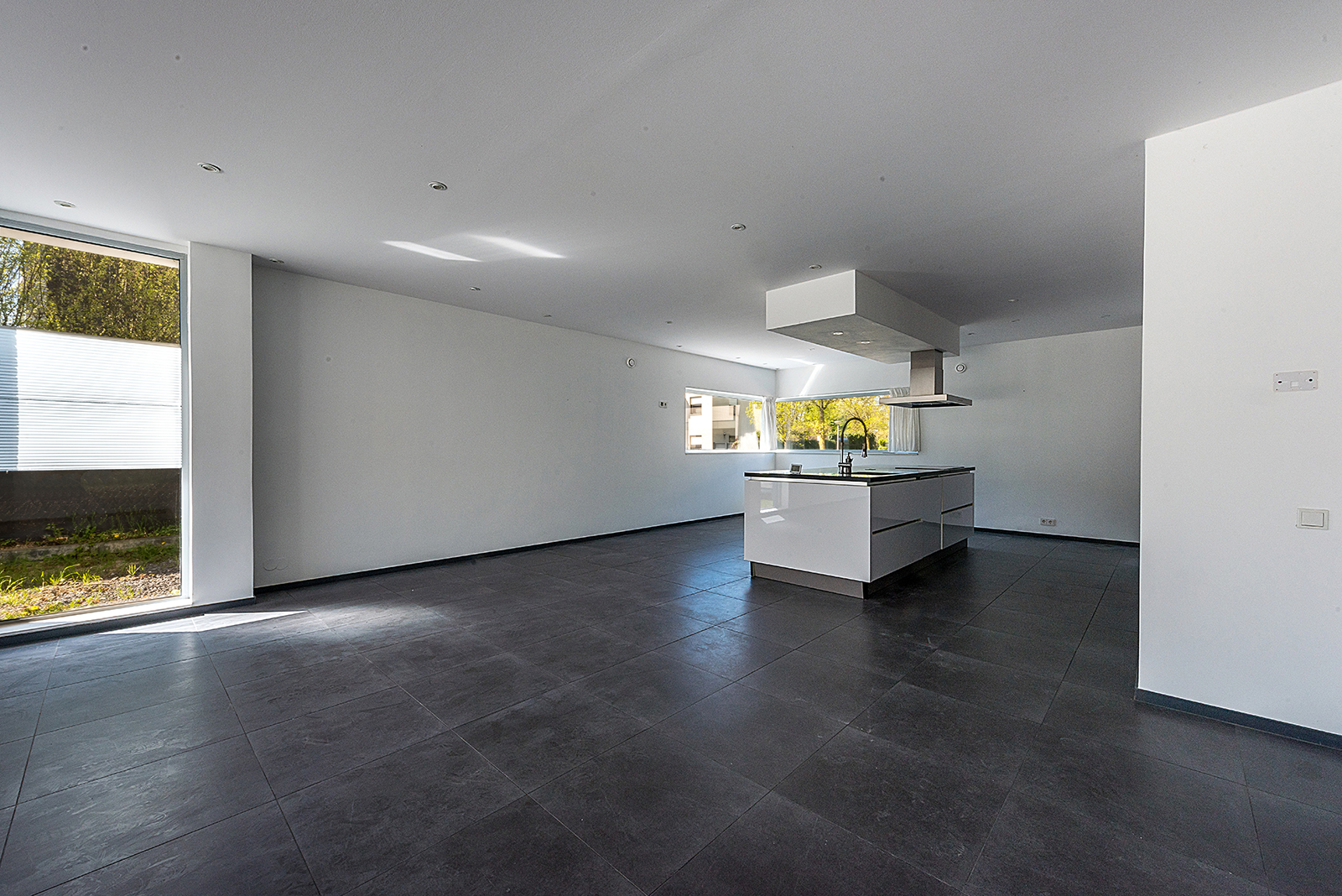 De royale en lichte living staat in open verbinding met de moderne keuken. Deze luxe keuken