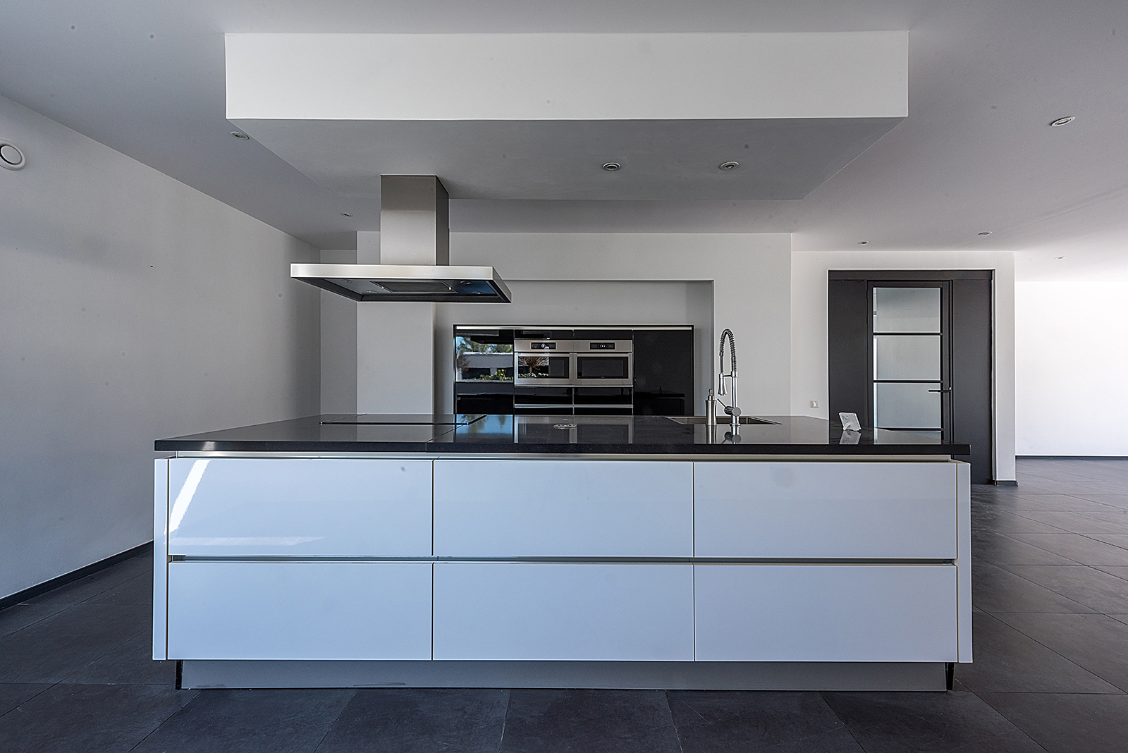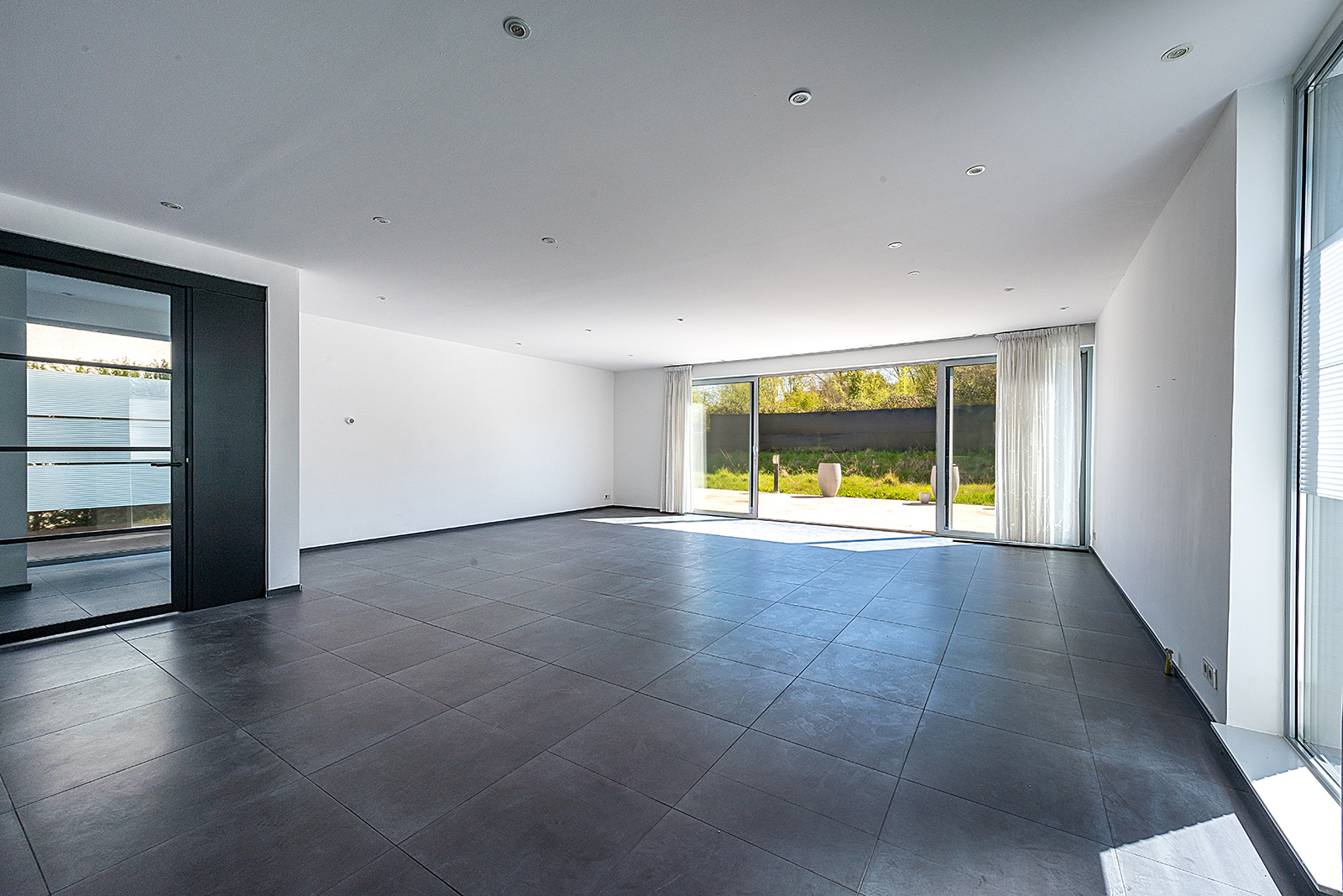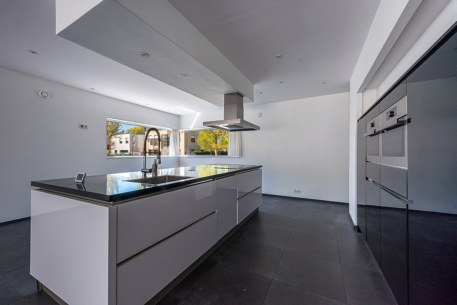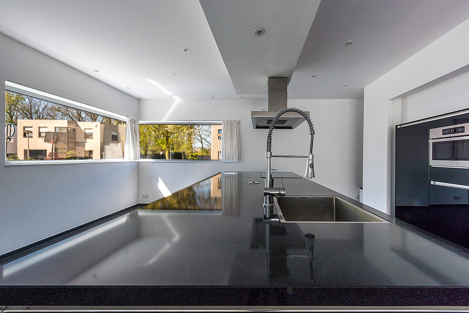 De royale en lichte living staat in open verbinding met de moderne keuken. Deze luxe keuken