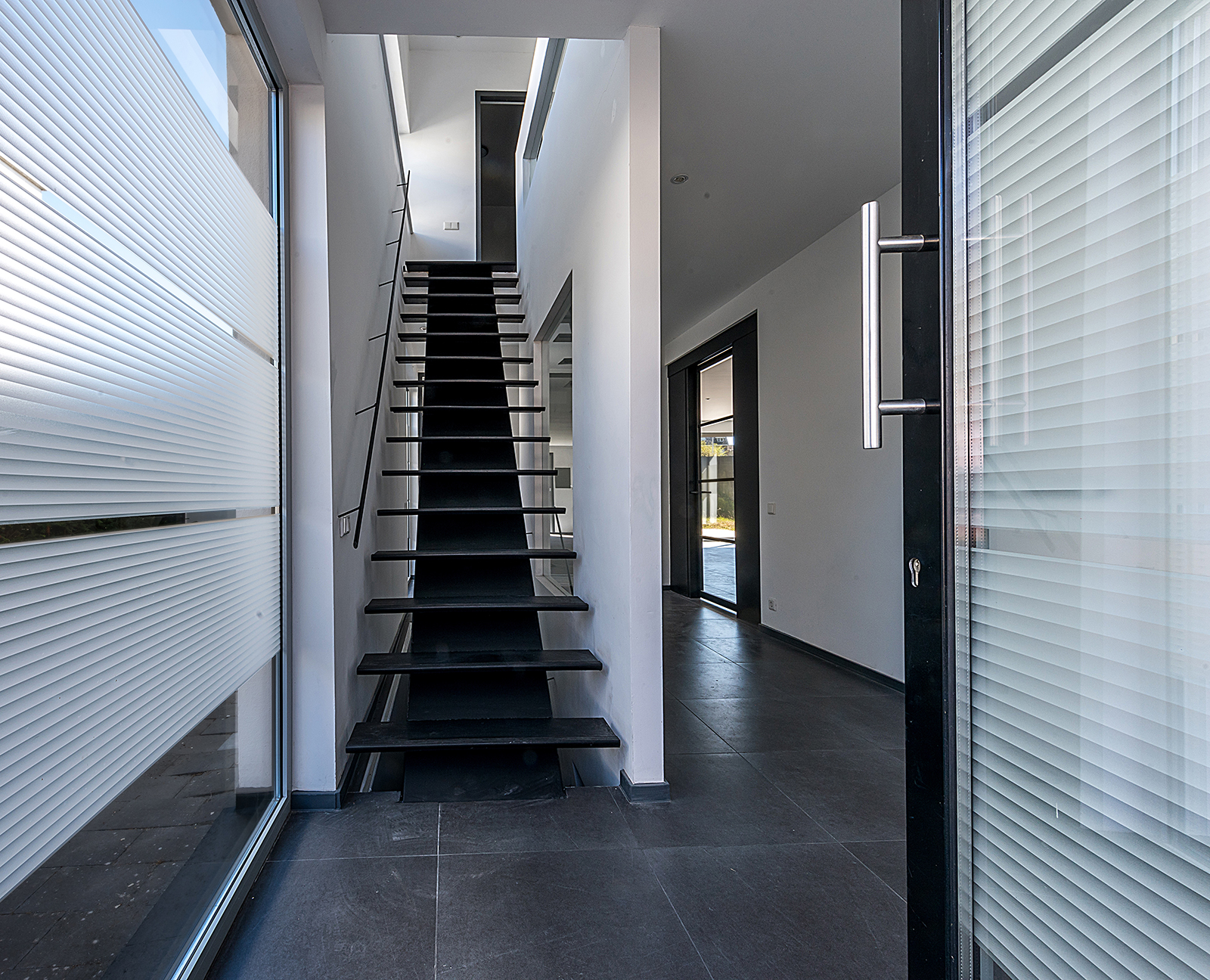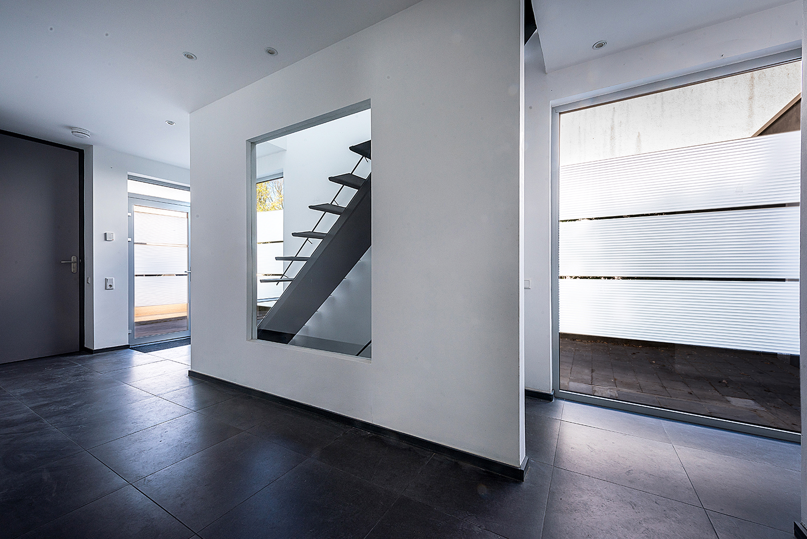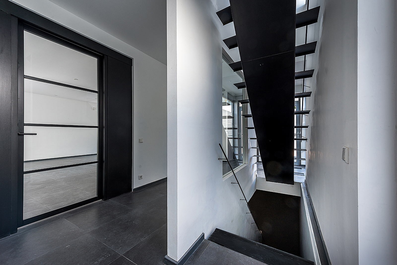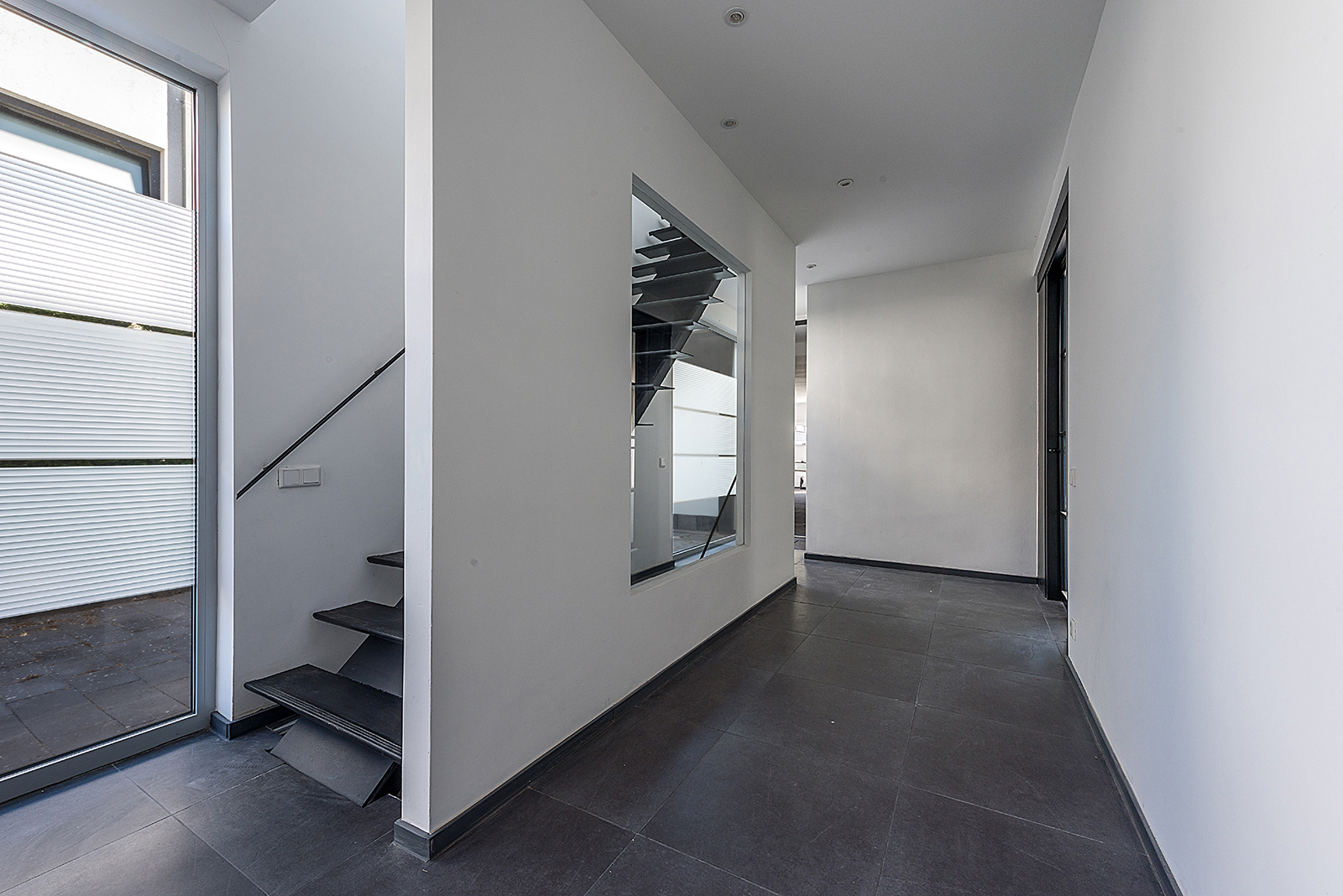 fonteintje en de trapopgang naar de eerste verdieping. Vanuit de hal is er een inpandige doorgang naar de