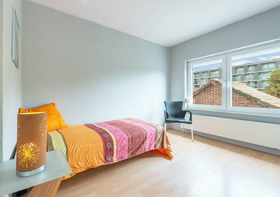 Overloop met laminaatvloer, drie slaapkamers resp. ca. 2.67 x 265 met balcon, 4.80 x 3.70 met inbouwkast en 3.70 x 2.50. Alle voorzien van een laminaatvloer.