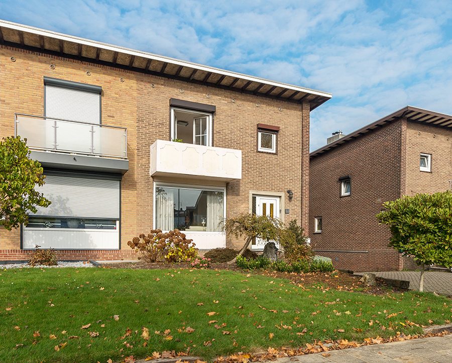 Halfvrijstaand woonhuis met inpandige garage en diepe siertuin.