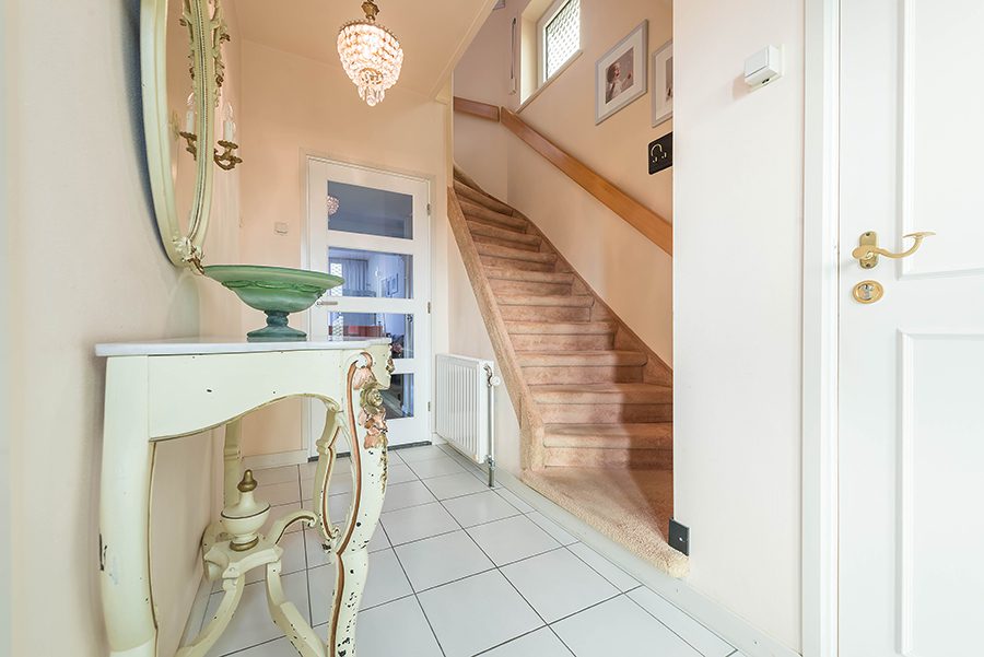 Entree/hal met tegelvoer, gastentoilet en meterkast