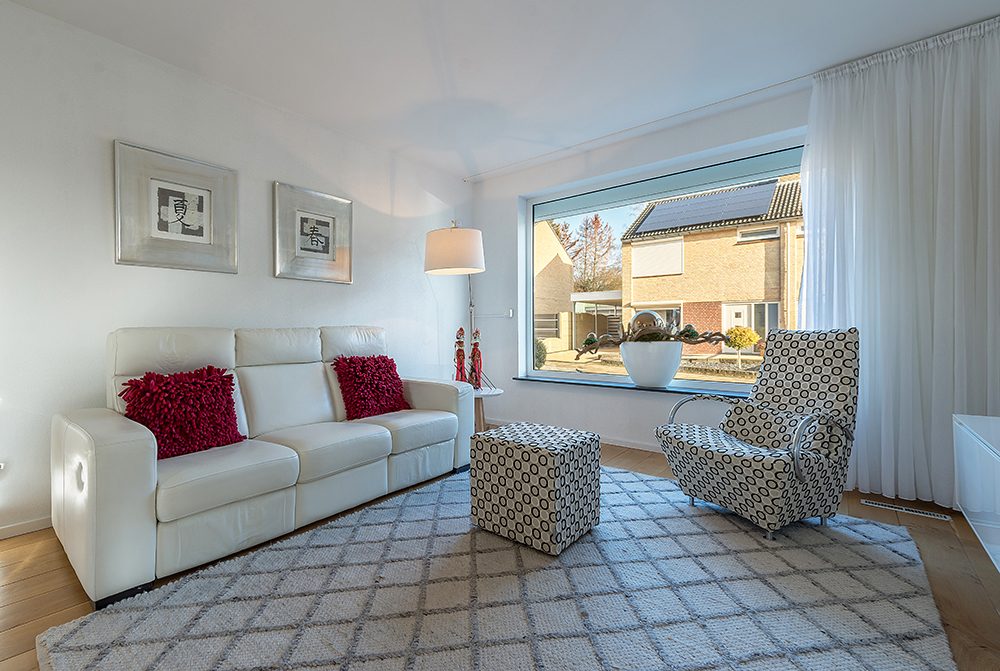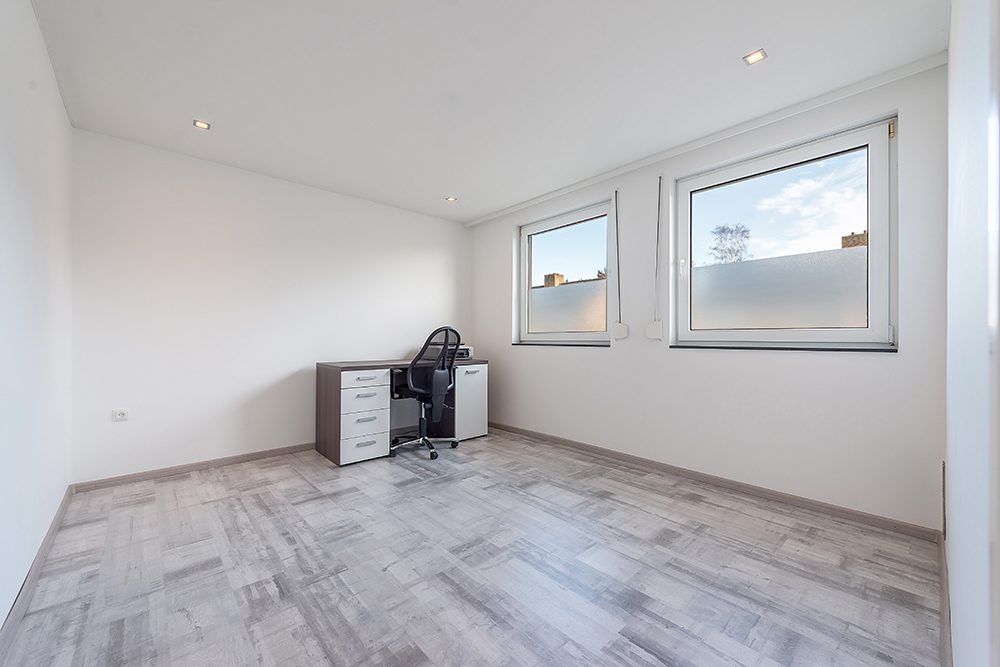 Alle kamers zijn v.v. een moderne laminaatvloer en strakke spanplafonds met inbouwverlichting. De kleedkamer kan eenvoudig weer als 3e slaapkamer gebruikt worden.