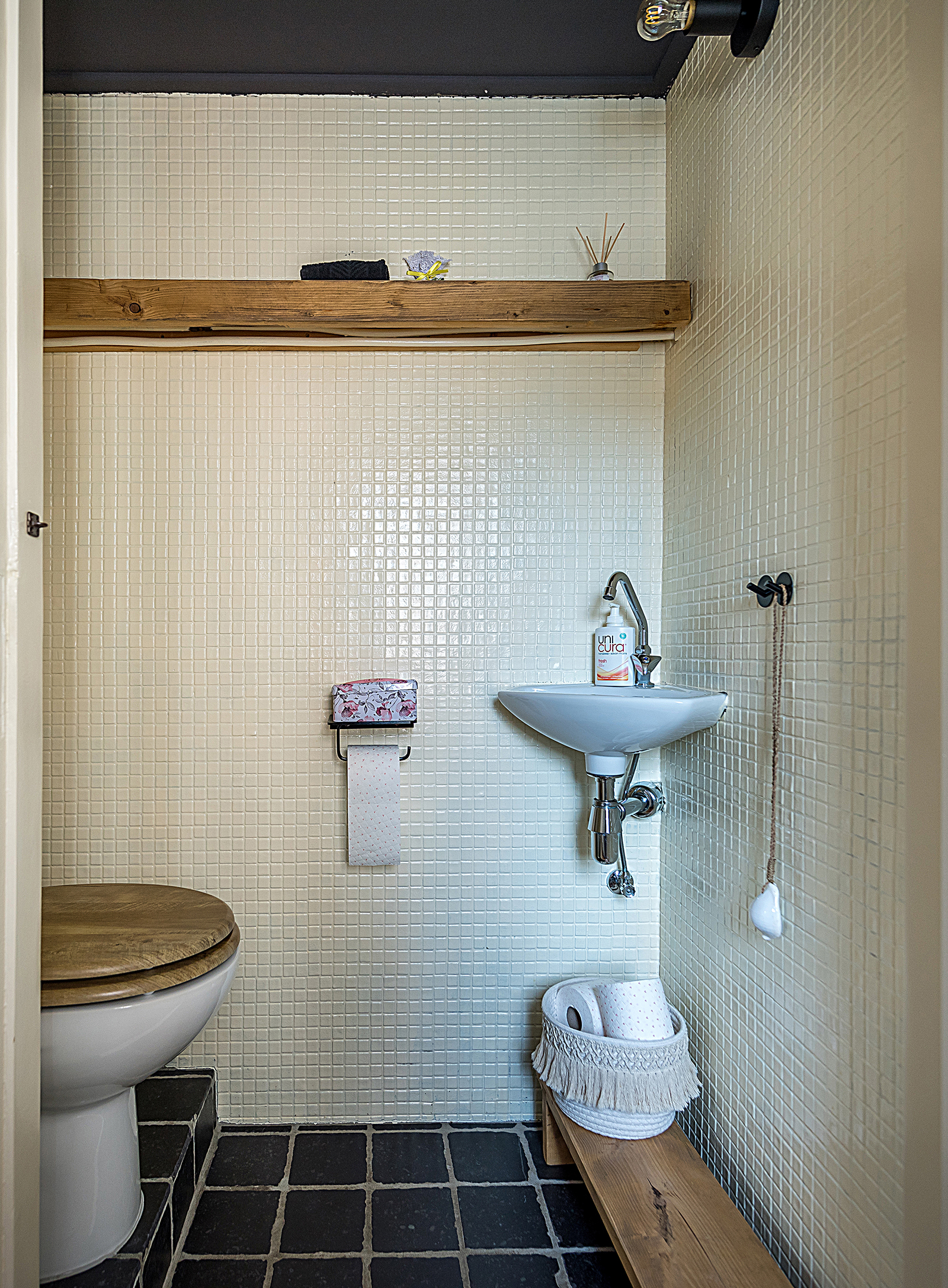 - Badkamer met douche en wastafel