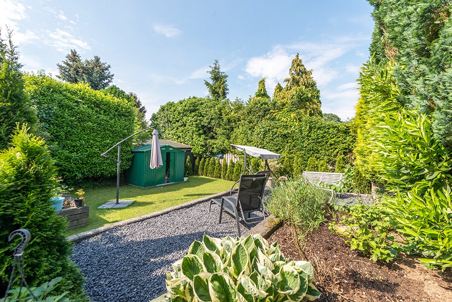 Omsloten siertuin met diepe inrit t.b.v. meerdere auto’s.